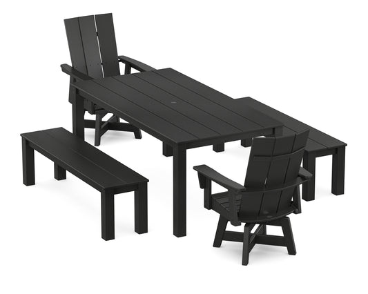 Modern Curveback Adirondack 5-Piece Parsons Swivel Dining Set with Benches