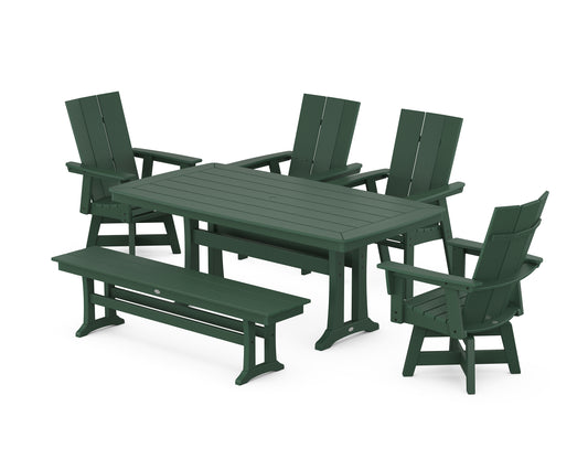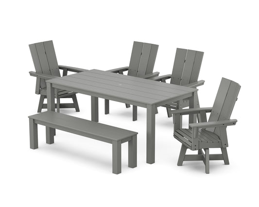 Modern Curveback Adirondack 6-Piece Parsons Swivel Dining Set with Bench