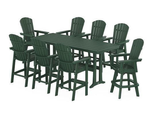 Nautical Curveback Adirondack Swivel 9-Piece Bar Set with Trestle Legs