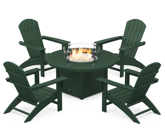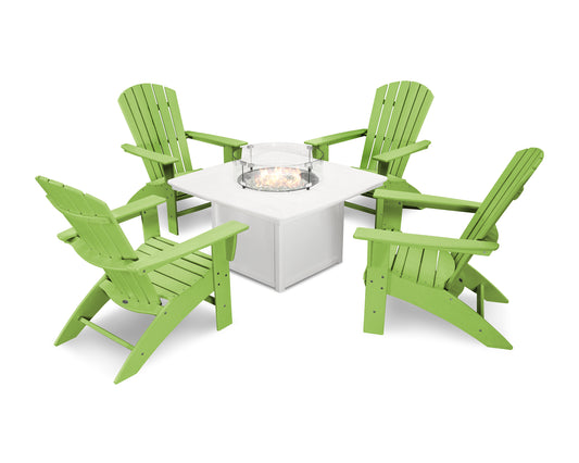 Nautical Curveback Adirondack 5-Piece Conversation Set with Fire Pit Table