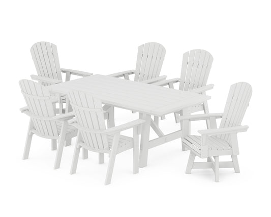 Nautical Curveback Adirondack Swivel Chair 7-Piece Rustic Farmhouse Dining Set