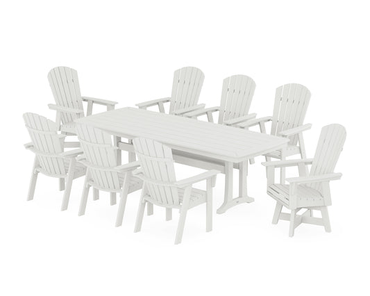 Nautical Curveback Adirondack Swivel 9-Piece Dining Set with Trestle Legs