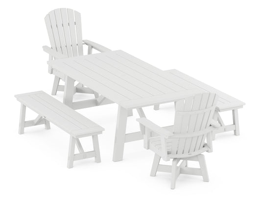 Nautical Curveback Adirondack Swivel Chair 5-Piece Rustic Farmhouse Dining Set With Benches