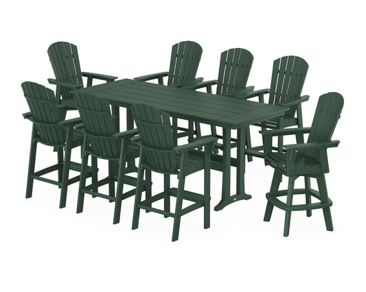 Nautical Curveback Adirondack Swivel Chair 9-Piece Farmhouse Bar Set with Trestle Legs