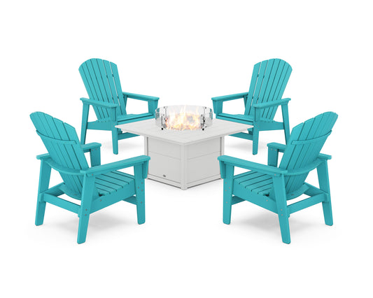 5-Piece Nautical Grand Upright Adirondack Conversation Set with Fire Pit Table
