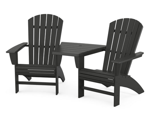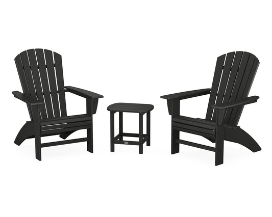 Nautical 3-Piece Curveback Adirondack Set with Angled Connecting Table