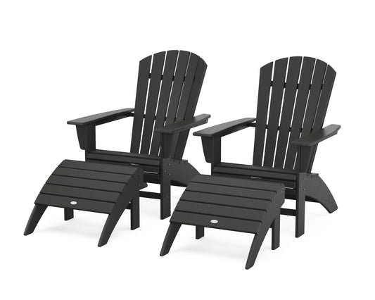 Nautical Curveback Adirondack Chair 4-Piece Set with Ottomans