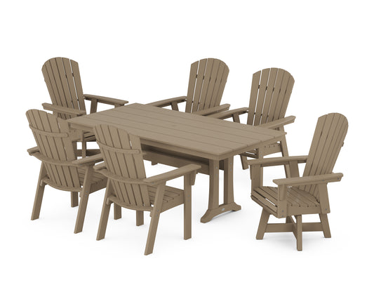 Nautical Curveback Adirondack Swivel Chair 7-Piece Farmhouse Dining Set With Trestle Legs