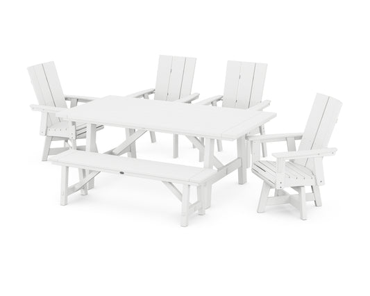 Modern Curveback Adirondack Swivel Chair 6-Piece Rustic Farmhouse Dining Set with Bench