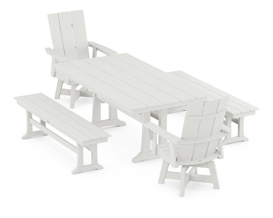 Modern Adirondack Swivel Chair 5-Piece Dining Set with Benches