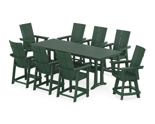 Modern Curveback Adirondack Swivel 9-Piece Farmhouse Counter Set with Trestle Legs