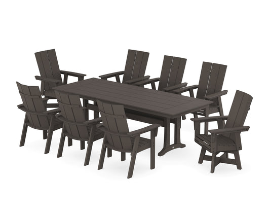 Modern Curveback Adirondack Swivel 9-Piece Farmhouse Dining Set with Trestle Legs