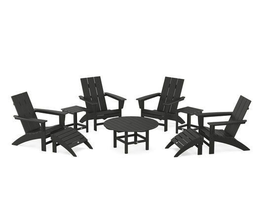 Modern Curveback Adirondack Swivel 9-Piece Bar Set with Trestle Legs