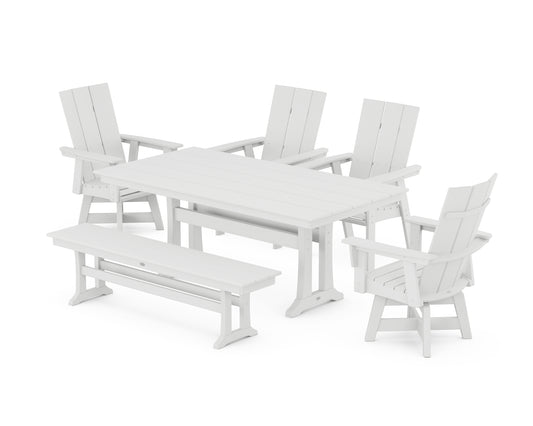 Modern Curveback Adirondack Swivel Chair 6-Piece Farmhouse Dining Set With Trestle Legs and Bench