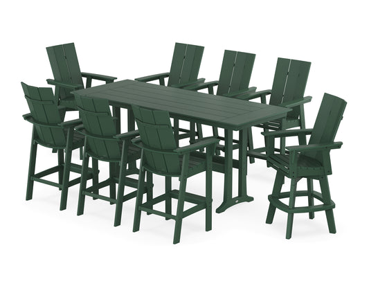 Modern Curveback Adirondack Swivel 9-Piece Farmhouse Bar Set with Trestle Legs