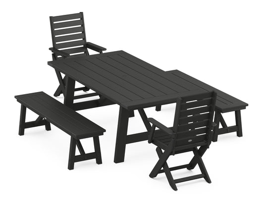 Captain Folding Chair 5-Piece Rustic Farmhouse Dining Set With Benches