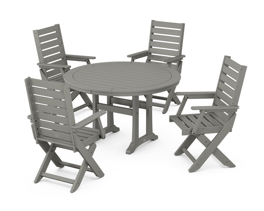 Captain Folding Chair 5-Piece Round Dining Set with Trestle Legs