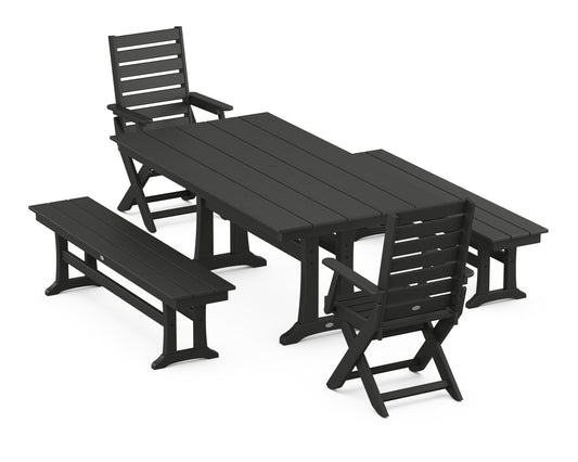 Captain Folding Chair 5-Piece Farmhouse Dining Set with Benches