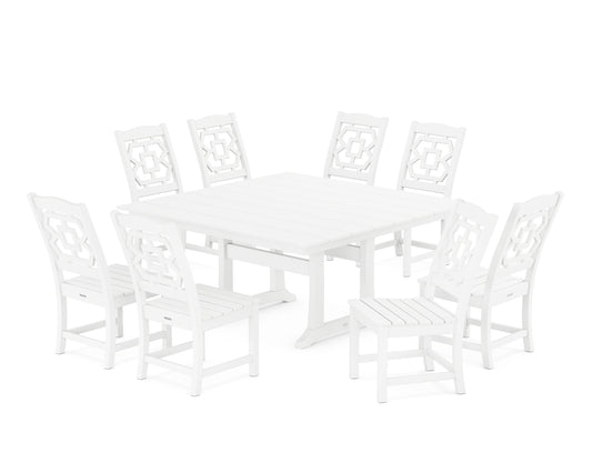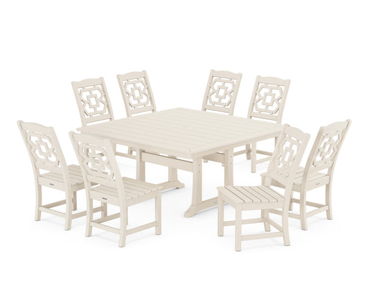 Chinoiserie 9-Piece Square Dining Set with Trestle Legs
