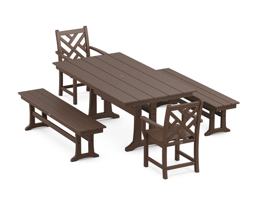 Chippendale 5-Piece Farmhouse Dining Set with Benches