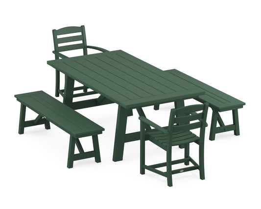 La Casa Café 5-Piece Rustic Farmhouse Dining Set With Benches