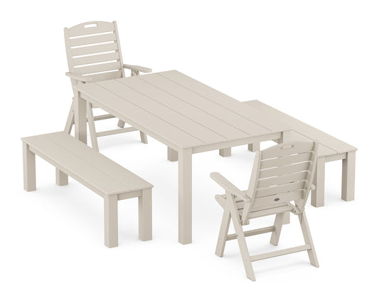 Nautical Folding Highback Chair 5-Piece Parsons Dining Set with Benches