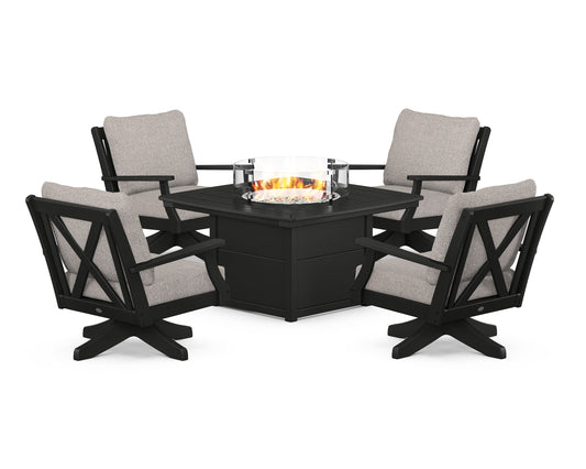Braxton 5-Piece Deep Seating Swivel Conversation Set with Fire Pit Table