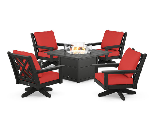 Chippendale 5-Piece Deep Seating Swivel Conversation Set with Fire Pit Table