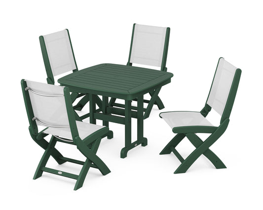 Coastal Folding Side Chair 5-Piece Round Dining Set