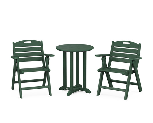 Nautical Folding Lowback Chair 3-Piece Round Bistro Dining Set