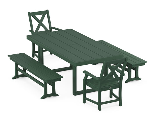 Braxton 5-Piece Farmhouse Dining Set with Benches
