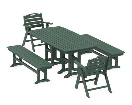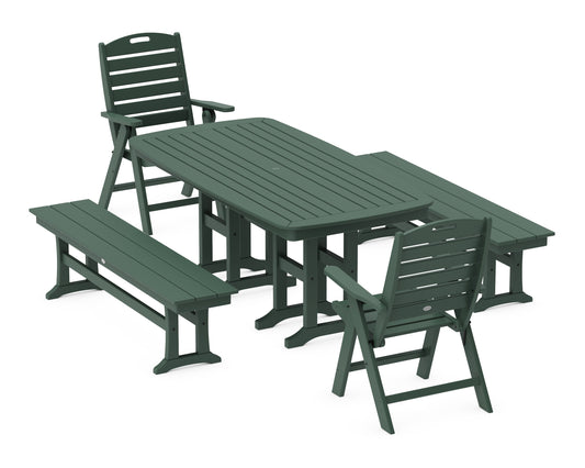 Nautical Highback 5-Piece Farmhouse Dining Set with Benches