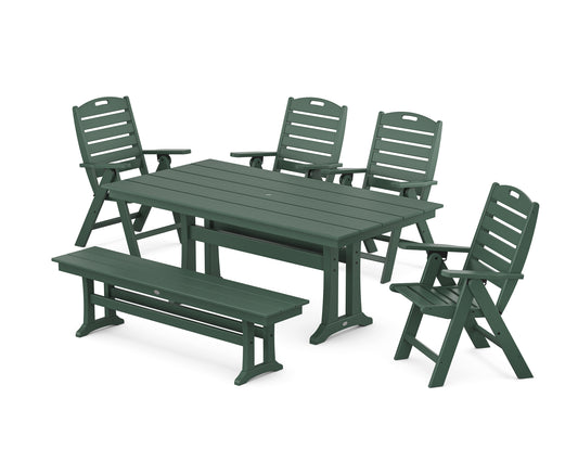 Nautical Highback 6-Piece Farmhouse Dining Set with Bench