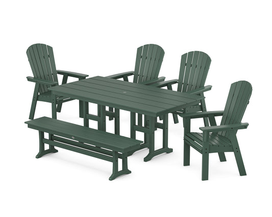 Nautical Curveback Adirondack 6-Piece Farmhouse Dining Set with Bench