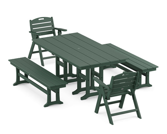 Nautical Lowback 5-Piece Farmhouse Dining Set with Benches