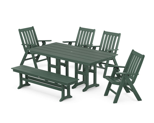 Vineyard Folding Chair 6-Piece Farmhouse Dining Set with Bench