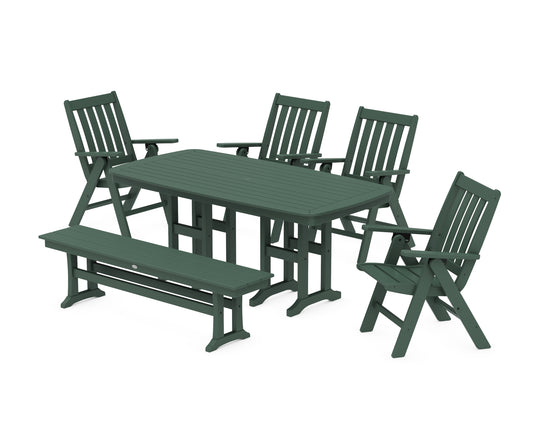Vineyard Folding Chair 6-Piece Dining Set with Bench