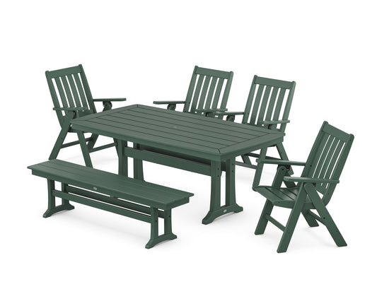 Vineyard Folding Chair 6-Piece Dining Set with Trestle Legs and Bench
