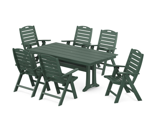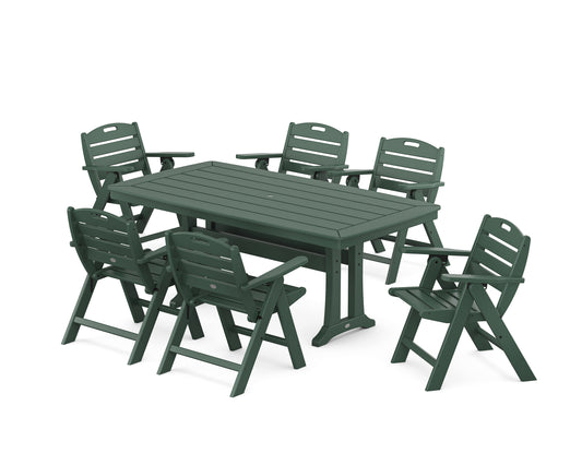 Nautical Highback 7-Piece Farmhouse Dining Set with Trestle Legs