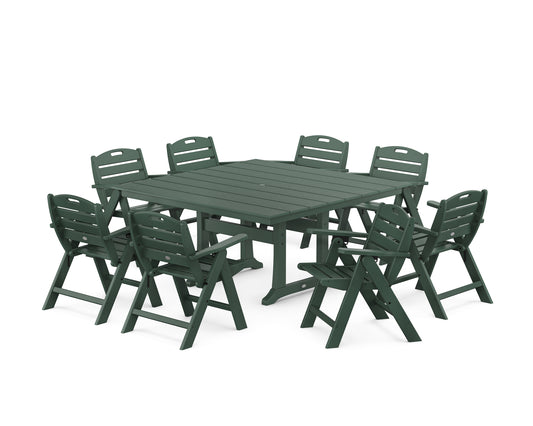 Nautical Highback 9-Piece Square Dining Set with Trestle Legs