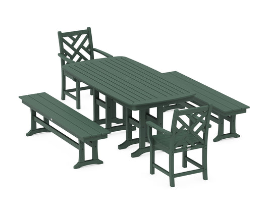 Chippendale 5-Piece Farmhouse Dining Set with Benches
