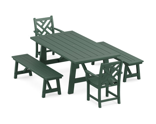 Chippendale 5-Piece Rustic Farmhouse Dining Set With Benches