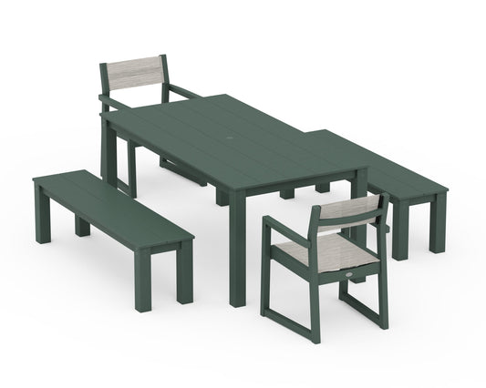 EDGE Sling Arm Chair 5-Piece Parsons Dining Set with Benches