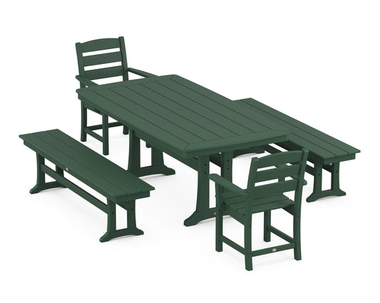 Lakeside 5-Piece Farmhouse Dining Set with Benches