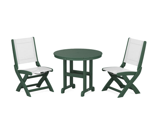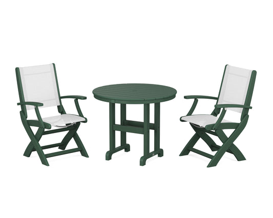 Coastal Folding Side Chair 3-Piece Round Dining Set