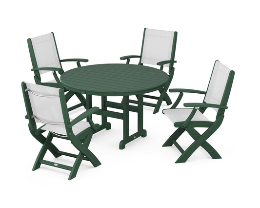 Coastal Folding Side Chair 5-Piece Round Dining Set