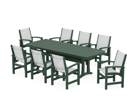 Coastal 9-Piece Farmhouse Dining Set with Trestle Legs