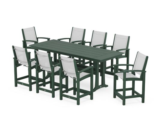 Coastal 9-Piece Farmhouse Counter Set with Trestle Legs