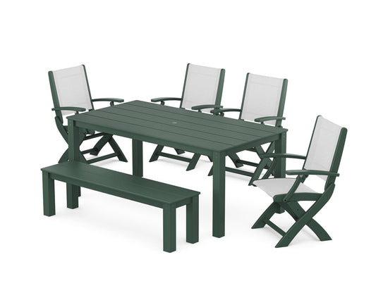 Coastal Folding Chair 6- Piece Parsons Dining Set with Bench