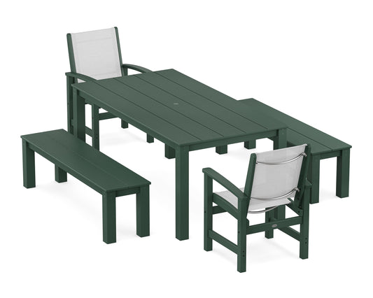 Coastal Folding Chair 5-Piece Parsons Dining Set with Benches